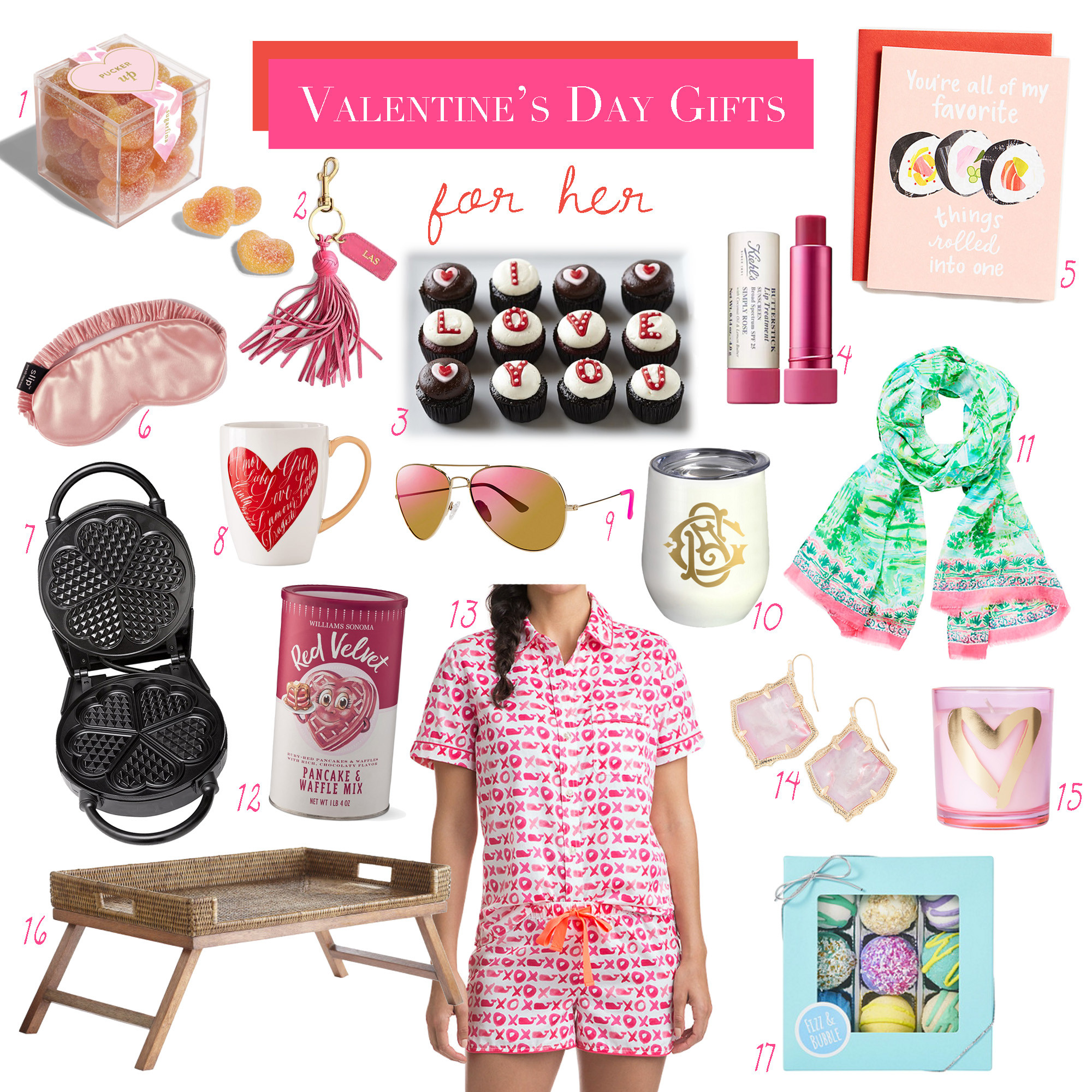 4: Butterstick Lip Treatment // 5: Sushi Valentine Card // 6: Silk Sleep Mask // 7: Heart Shaped Waffle Maker